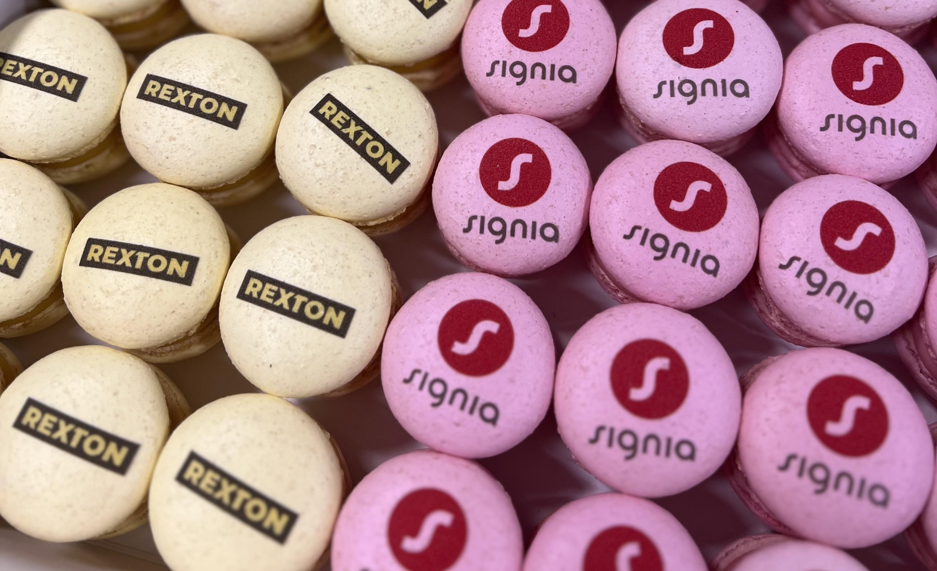 Design dine helt egne macarons: Vælg mellem 25 varianter og tilføj en unik besked eller logo.